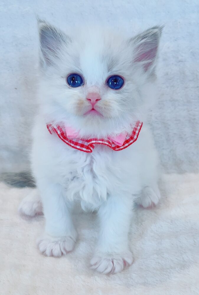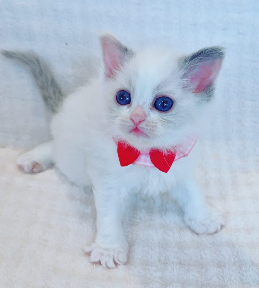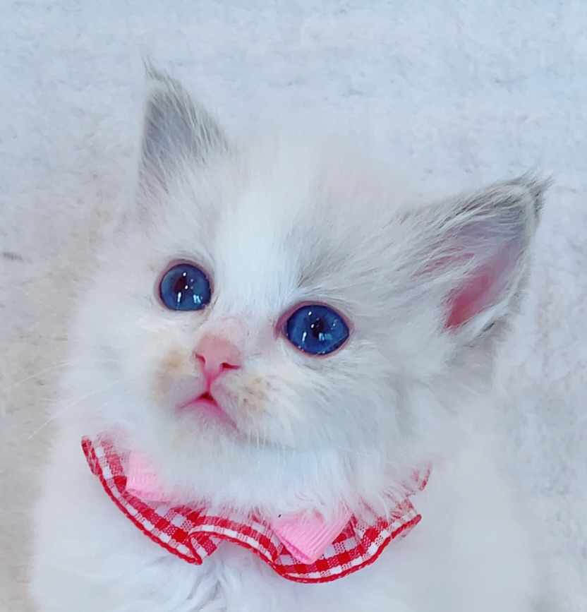 ラグドールの中でも誕生数が少なく、意図してもなかなか出会えない非常に希少なカラーです。🌠やわらかなクリーム色のポイントと純白の被毛が織りなす上品なコントラストは、