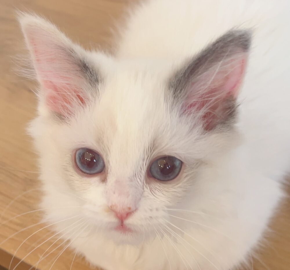 ラグドールらしい上品さと気品を感じさせる、とても整ったお顔立ちをしています。💖💖大きく澄んだ瞳でこちらを見つめる姿はとても愛らしく、