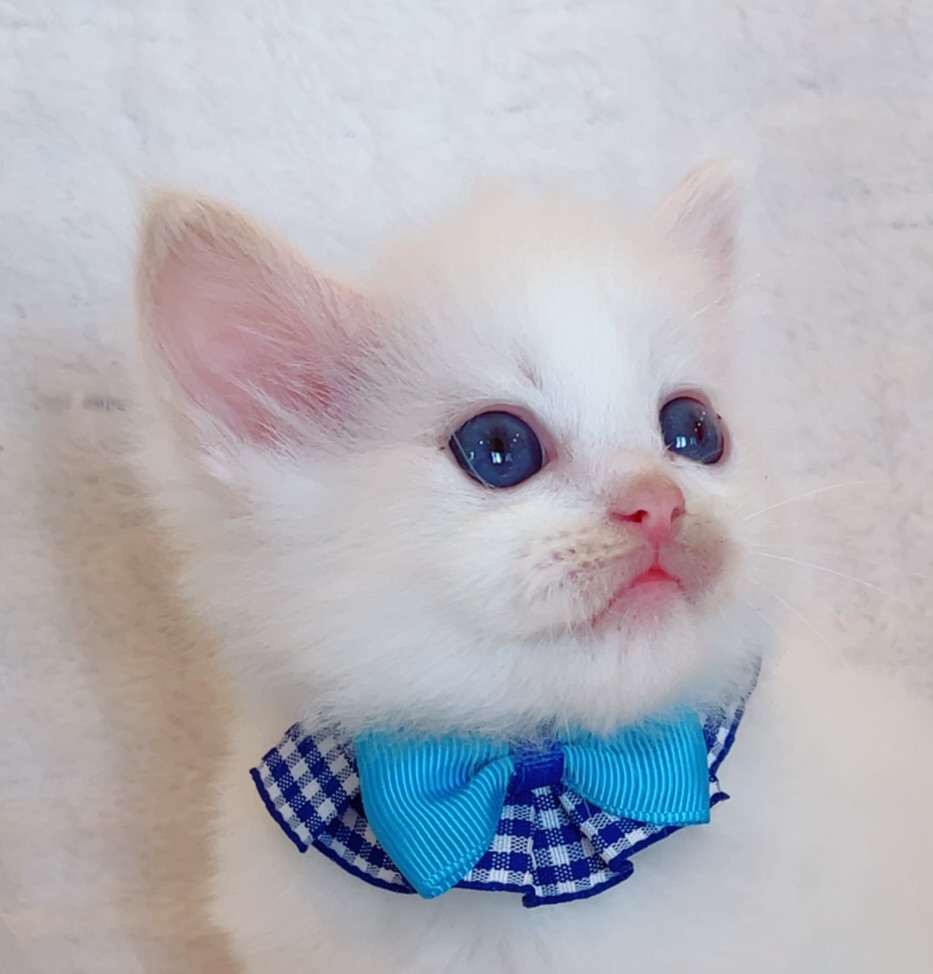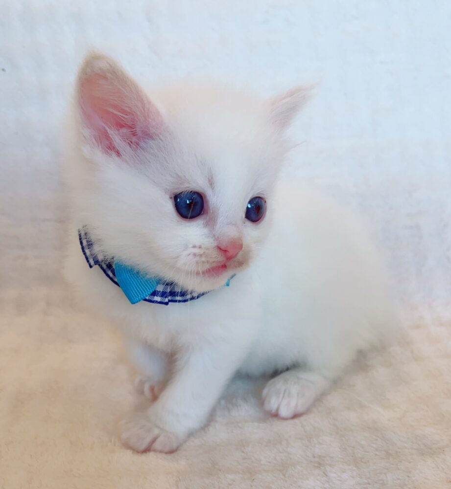 ラグドールの中でも誕生数が少なく、意図してもなかなか出会えない非常に希少なカラーです。🌠やわらかなクリーム色のポイントと純白の被毛が織りなす上品なコントラストは、